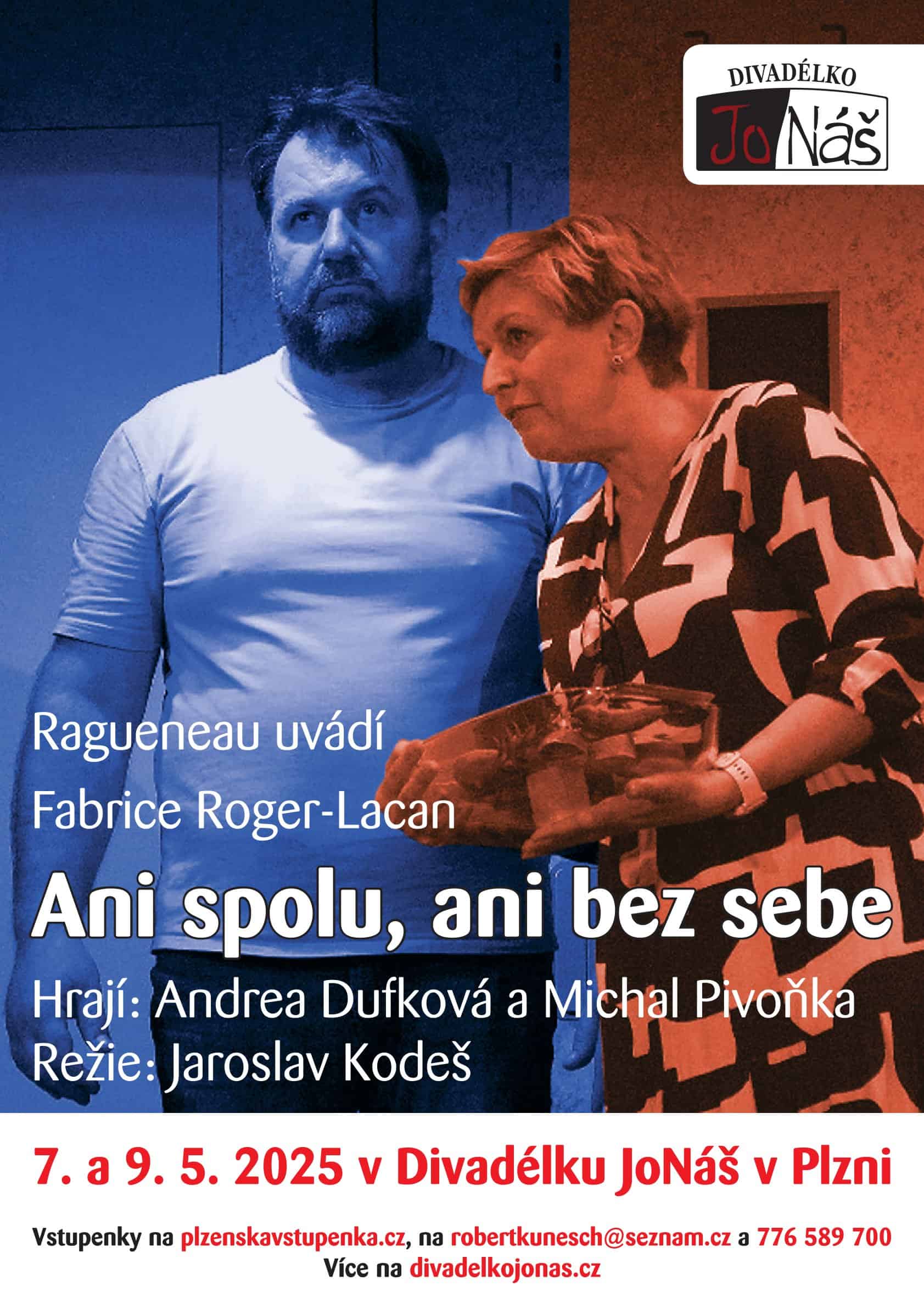 A posledním nedělním představením a posledním představením festivalu bude čerstvá novinka DS Ragueneau. Premiéra partnerské komedie Fabrice Rogera-Lagace v režii Jaroslava Kodeše proběhne/ proběhla 9. května. Andrea Dufková a Michal Pivoňka hrají o tom, že nelze být Ani spolu, ani bez sebe.