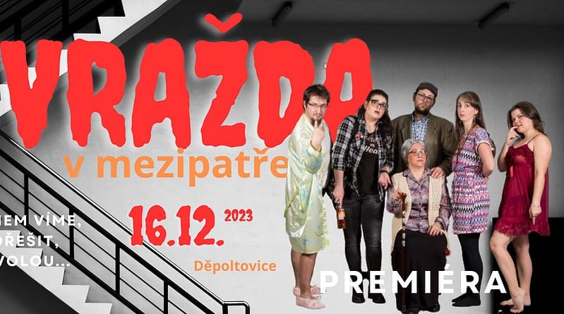 Premiéra Vraždy v mezipatře proběhne v sobotu 16. prosince 2023 v Děpoltovicích. Je pro uzavřenou společnost, takže se do Ostrova nechystejte. Ale máte-li zájem pozvat Ochotníky z Ostrova s kteroukoli z jejich komedií – a že budou za každou hostovačku v příštím „bezdomoveckém“ období vděčni – obraťte se na https://ochotniciostrov.cz/kontakt/