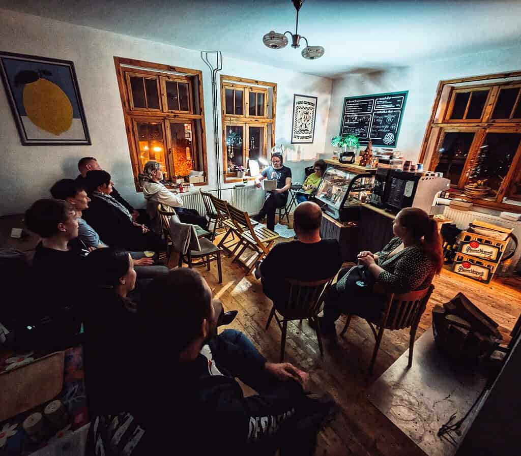 VK: Bavilo mne také na večerech věnovaných poezii přednášet básně různých autorů. V roce 2017 jsme se třemi dalšími lidmi dali dohromady večer věnovaný černému humoru a dekadenci, který jsme nazvali Hellbogen. Pořad měl nečekaně velký úspěch (četl jsem povídku Střeva od Chucka Palahniuka). A protože jsme byli všichni literárně činní, napadlo nás si další večer napsat sami. To mělo ještě větší úspěch. A tak jsme připravili další dvě pásma, kde jsme vyzkoušeli například loutkové divadlo, písně, striptýz, podříznutí starosty obce (museli jsme pak vymalovat), hrané skeče, dramatický přednes poezie a další vylomeniny. Od klasického předčítání jsme tak přešli k jakési formě kabaretu. A když jsme se po čtvrtém díle na jevišti při nadšeném aplausu brodili umělou krví, konfetami, odhozenými kondomy a stránkami s textem, věděli jsme, že jsme na správné cestě.