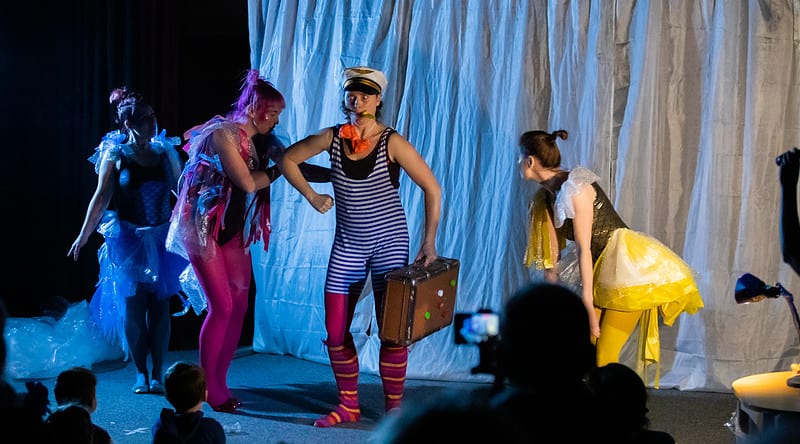 IČ: I tato otázka je pro mě také velmi zajímavá a děkuji za ni. Dnešní svět je jiný, než v době, kdy Skácelova Uspávanka vznikla. Příroda je něco, co nás odjakživa fascinuje. Je součástí našeho života, bez ní a bez její ochrany nebudeme moci plnohodnotně žít a být šťastní. Otázka plastů nejen v oceánech je tak palčivá, že se stala součástí našeho každodenního života. A i když se ve Skácelově Uspávance nic takového v textu neobjevuje, neboť v minulém století tento problém ještě tak aktuální nebyl, báseň je o oceánu, rybách a velrybě a to nám stačilo k tomu, abychom se na ně nacítily a tak nějak přirozeně do inscenace tento důležitý prvek zakomponovaly.